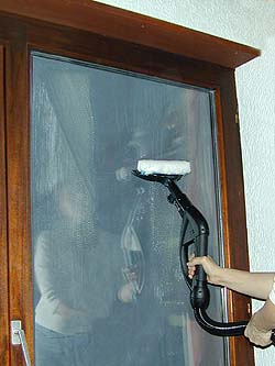 Befeuchten, putzen und streifenloses Absaugen.